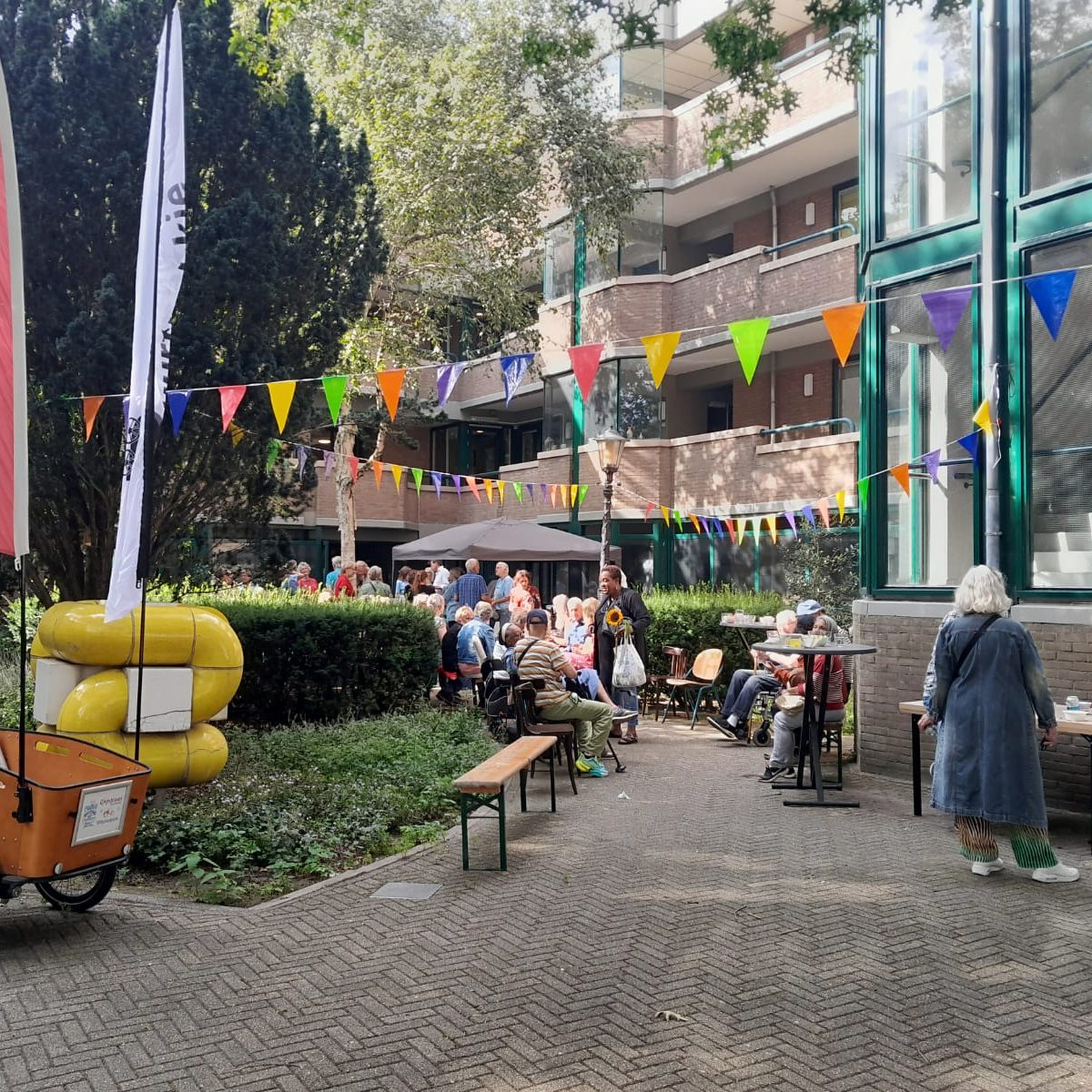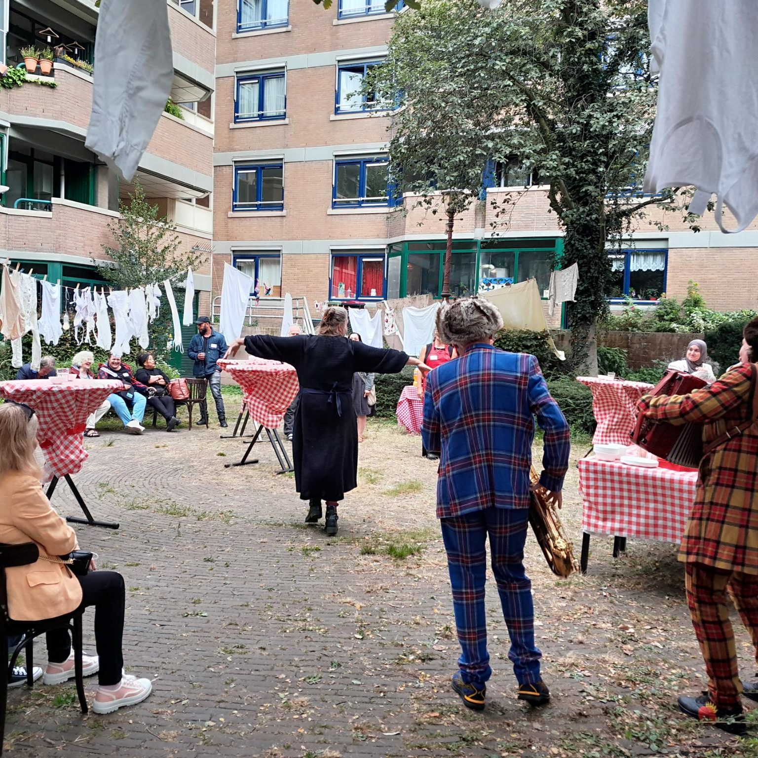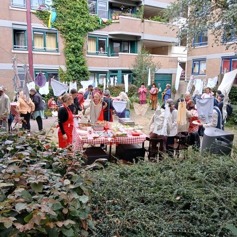 Als nieuw team gaven we begin september een feest voor de vrijwilligers om ze te bedanken voor hun inzet. Dat was erg leuk. Om een Italiaanse sfeer te creëren, hebben we de was buiten opgehangen en er was Polkamuziek en catering van Isam (de kok van buurtrestaurant Hembrug & Zaandammer).