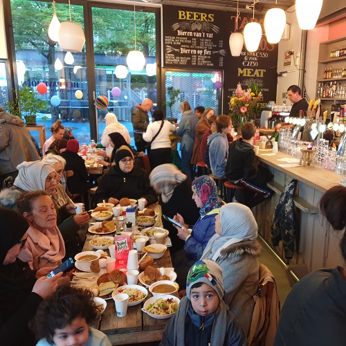 Er zijn ‘tips en tops’, dat is goed, daar wordt alles altijd beter van, want ja, de volgende keer moet het anders. Maaaarrrr, eerlijk is eerlijk, je hebt het weer geflikt. Vijf dagen van tevoren, iedereen in, naast, achter en voor je karretje en rijden maar met z’n allen, voor een iftarmaaltijd met bijna 60 buurtgenoten in een gezellig, gastvrij Paviljoen. Go Farida!