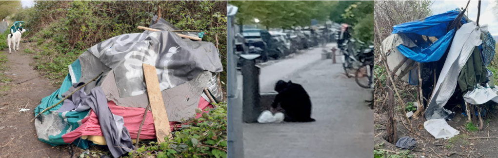 Je zoekt de bal van je hond en je komt in een andere wereld, een wereld van tentjes, gemaakt van bij elkaar geraapte spullen.