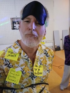 Cor wil altijd heeeeeeeeeeel graag de controle houden, dus bonden we hem eens echt stevig vast op de stoel, zijn handen in ijzeren handboeien – kindermaat, dus het viel niet mee om die aan te krijgen en aan te houden vooral – en een blinddoek om. Hij lachte wel, maar zijn lichaam rilde. We trokken het touw nog even wat steviger aan. Koud zweet brak uit en de lach werd een verbeten grijns.
